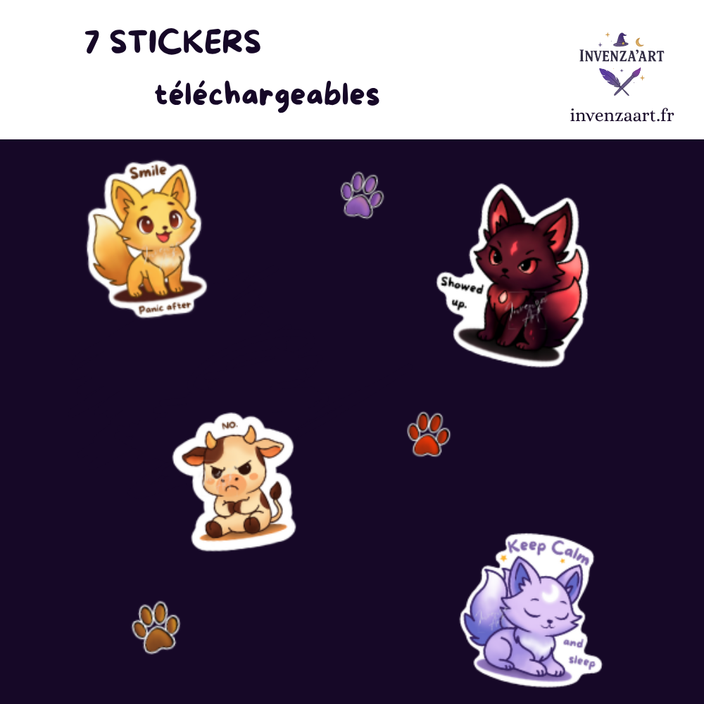 Catégories : Tous livre précommande Illustration imprimée Artthérapie Animaux totem Affiche/cartes Projets premium (bientôt) Tous | livre précommande | Illustration imprimée | Artthérapie | Animaux totem | Affiche/cartes | Projets premium (bientôt) | PRECOMMANDE Grimoire Magique à Colorier 80 pages À partir de 20,00 € Mon bracelet totem - DIY Artthérapie PDF 3,00 € Aide Motivation - Stickers d'encouragement Abracadabra PDF 4,00 € coloriage mystère - kpop demon hunters 0,00 € Grimoire Magique à Colorier (version numérique PDF – 80 pages) 6,99 € Affiches, accessoires, stickers et vêtements 0,00 € Puppy- fichier point de croix/pixel art à télécharger 1,50 € Mandra- fichier point de croix/pixel art à télécharger 1,50 € Cartes SOS - Aide en cas de crise 2,50 € Sticker digital - Kitsune love à télécharger 2,00 € Sticker digital - kitsune funny téléchargeables 2,00 € TOUCH&TOTEM - Carré sensoriel crochet, PDF Prix promotionnel : 3,00 € Prix initial : 3,90 € Promotion Affiche "c'est quoi le TDAH?" , A4, à imprimer, numérique Prix promotionnel : 2,50 € Prix initial : 5,00 € Promotion PassePage - Marque page anti-oubli personnalisé, Savane 2,00 € PassePage - Marque page anti-oubli personnalisé, Pinou 2,00 € PassePage - Marque page anti-oubli personnalisé, Lou 2,00 €